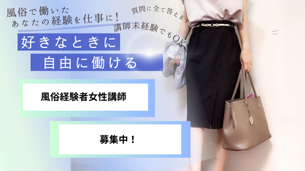 急募!風俗女性講師募集中!講師未経験でもOK 2026.04.10 2026.04.10 Tweet 風俗の経験がある女性で講師になりたい方募集中です。有名風俗店舗、全国の大手風俗グループと契約しておりすぐに安心して働けます。現役のキャストさんでも兼業が可能です 講師の経験が無くても基礎から教えます。東京、東京近郊エリアで急募しています。詳しくはお問い合わせください。 XBluesky Tweet この記事のタイトルとURLをコピーする 4月5月講習のご予約受付中! 前の記事